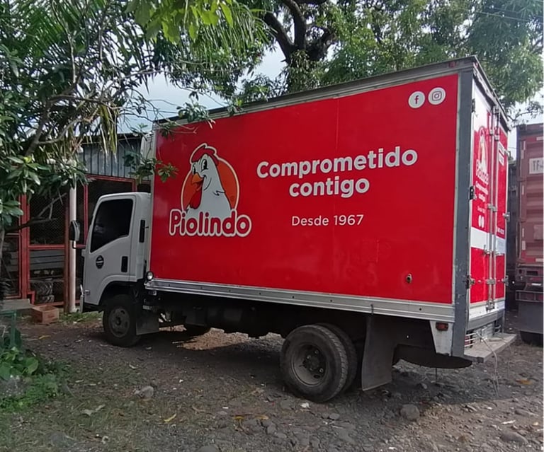 La lona mesh se utiliza en espacios publicitarios exteriores. Su diseño microperforado permite la circulación del viento. Proyecto realizado para Adidas Miami, lona instalada sobre furgones en barco carguero.